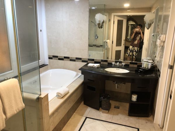 我們是住5樓,雖不是海景房,但可以看到一點點的海景,房間也附有吹風機、所有沐浴用品、浴缸、乾濕分離的浴室、超大的鏡子