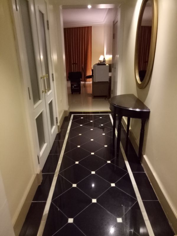 一進到飯店 覺得特別 1樓就有兩三間餐廳 旁邊就是商店 附近就有站牌 一進入飯店房間 房間燈光很美 房間很大間 有長長的走道 兩張雙人床 房外的景色雖然看不到海 關島外的街景也是有另外一番風味