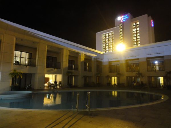 房間很大很舒服.浴室廁所乾濕分離.還有獨立衣帽間.整體空間超大!設備不算新但冷氣超涼.且服務人員也超級親切.是個很棒的住宿經驗!飯店雖沒有緊鄰沙灘.但我入住的面海房視野很棒.6樓有游泳池及健身房.健身房內的飲水機24小時免費無限供應飲用水.所以我在關島沒買過水.很棒吧!照片是泳池夜景照.對面發亮的大樓是PIC~