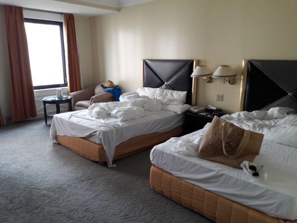 飯店大廳在2F要搭電扶梯上去我住5F房間看出去有海景景觀視野不錯雖然沒有沙灘.房間很大2張加大的單人床很舒服.浴室廁所乾濕分離有大浴缸.對面就是PIC渡假村開車認地標都不會迷路(可以跟櫃台詢一下10:00免費提早入住大部份接機導遊說下午14:00才能入住)