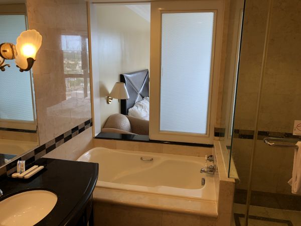 我們這次入住一共是三大兩小,也許是因為帶小孩的關係,原本訂的是Standard Twin房型,結果被升等到七樓的Family Room,房間很大,浴室空間也很大,還有陽台面對游泳池。唯獨因為飯店比較舊,我們就遇到洗手台會漏水,只好先用一個垃圾桶接水,但是隔天玩回來竟然就修好了,大概是清潔人員有幫我們通報。WIFI一到晚上尖峰時間就會變得很慢,有時甚至會連不上去。不過整體來說CP值還算不錯。