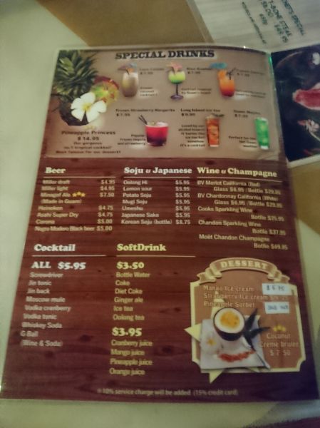 新鮮的龍蝦,鮮美多汁的牛排,服務人員的親切款待,晚上6:30還有查莫洛原住民的晚餐秀,非常推薦給想享受一番的旅客前來享用美味的餐點和表演