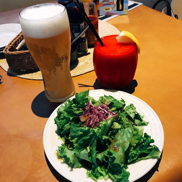 牛排也是很好吃是屬於肉質比較有咬勁肉汁很甜,只是他的肉有一點筋習慣吃菲力口感的人可能比較不愛,再來溫沙拉也很好吃醬搭配上面的培根碎粒很美味,另外必點的就是飲料菜單上面有一款關島啤酒旁邊有三顆星,非常的好喝入口會帶有一點特殊的果香尾韻也是很濃的麥香非常有層次,後來在其他的餐廳都沒看到,可惜找不到不然就把它帶回台灣了