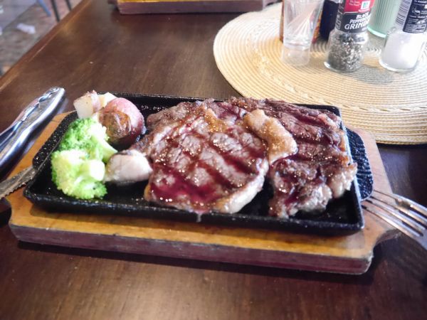 「Core BBQ Garden & Bar」網路很多人都推薦這家餐廳,生意很好要提早預約,所以在去之前就寫E-mail 預約,也佷高興收到他們的預約回函,這家餐廳有提供到飯店接送服務,晚餐有現場表演,想看免費表演及接送服務,預約時可一並告知店家。我們主餐點了SPECLAL CUT STEAK SET(黑安格斯牛排套餐)39.95美元、Tasi Set(波士頓龍蝦+烤鮭魚)57.95美元、Tender loir kebab(烤肉串)8.95美元及GARLIC SHRIMP 7ps(大蒜蝦7隻)12.95美元,後面兩道是網路菜單上没有的,服務生特別推薦點的。每一道菜味道真的非常好吃,龍蝦要烤前會抓到餐,讓你確認是活的及烹煮方式,飲料就一般般没什麼特別。這家餐廳已經搬家了,按照關島之家地圖差點找不到,還好遇到好心人,幫我們打電話給餐廳才找到,現在位子很好找,就在飯店街上,大約在Ban Thai 泰式美食對面。