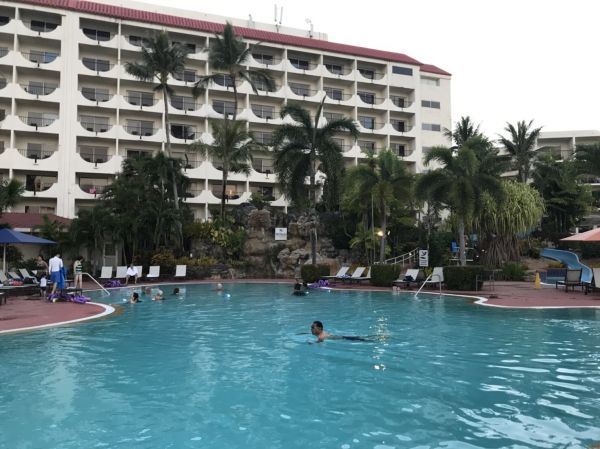 這次住宿在希爾頓,覺得很不錯。飯店有五個游泳池還有滑水道,雖然泳池有幾個規模不大,但是很適合帶小孩一起來玩。飯店的海灘是礁岩地形,走下去沒幾步就可以浮淺看魚。我有三天早上都跑去浮淺,拿麵包餵魚,上來還可以在游泳池邊躺椅上曬個太陽,萬分悠閒,度假超級棒。