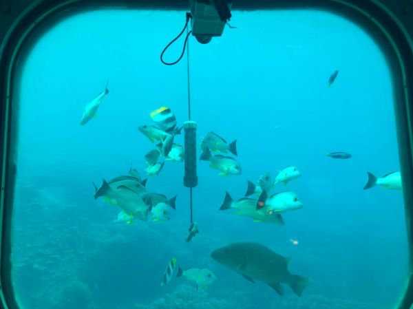 來的時候剛好有潛水員下來餵食,怕水的我覺得很新奇,魚眼的員工也很熱情的拿飲料給我們消暑,但是我不太確定那是什麼,應該是蔬果汁吧,下次大家可以嘗試看看