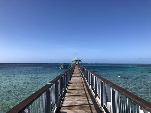如果你跟我一樣有帶小孩,又想讓小小孩與水中生物一起同樂的話,那你一定不能錯過這個景點,要到魚眼公園,會先經過一段海上長堤,海風輕吹,會讓你真的想要就打個地舖在長堤上睡個午覺。 長堤走到底,就可以抵達海底水深10公尺的小小水中觀賞站,與水中的魚兒一起同樂!