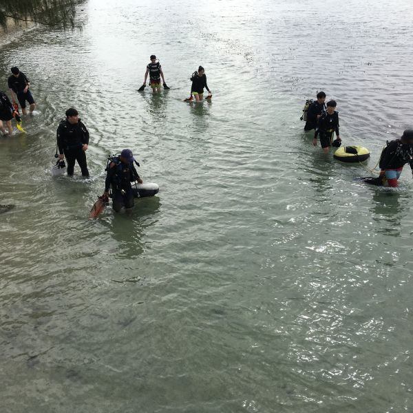 來到魚眼公園,居然發現在我們的腳下(橋下)有人背著氣瓶在浮潛,我特別問他們一下,海底的風景漂亮嗎?他們說,如果有機會你一定要下來看看!我看到他們在岸邊淺灘的深潛教學,也超詳細的,如果你跟我一樣熱海水上活動,那你一定不能錯過這個私房景點!