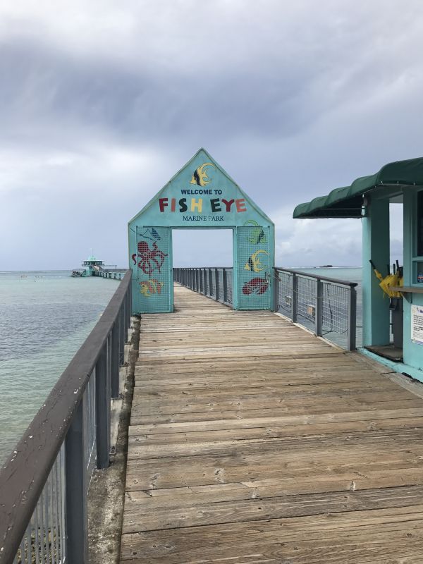 知道進去一張的門票不便宜,好像是1x美金,所以我們就選擇不買票進去在旁邊拍照。這邊非常多人在潛水,所以會看到一坨人聚在一起,所以潛水過的人其實就看得到魚眼海洋公園裡面是如何。在魚眼海洋公園可以隨意地拍照,非常適合網美或非網美打卡~