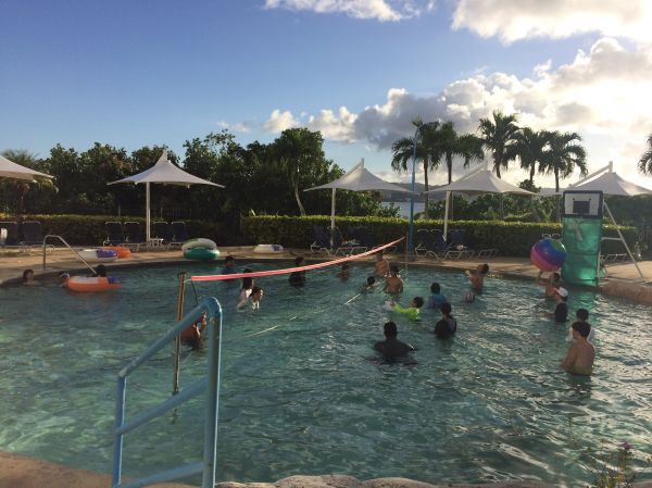 安華渡假村的 Alupat Island.(阿露貝島) 來關島玩,前兩晚住在安華度假村,晚上6點Check in之後,來到在22層樓的房間。一進入房間,兒子看到陽台外Agana Bay(亞加納彎)上的小島,自己拍著胸部(有點害怕),但是嘴上又嗚嗚啊啊地叫(很興奮),手一直指著小島,來來回回地在房間穿梭。我們整理行李就安撫他一下,開始教他念“島”這個字;他也很快就學會了,一直跟著複頌著.島凹...島凹...島凹! 安華度假村,很適合親子旅遊,從房間內的小孩牙刷、拖鞋、獨立嬰兒床、大人床邊還有防摔護具,餐廳小孩的餐具、座椅,戶外水上的兒童救生衣,處處都有孩子可以用的。