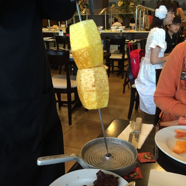 這是我在關島吃完六天後覺得最美味的一家,一樣是吃到飽卻不油膩,菜很清爽,配上肉真是絕配!這家店好玩的地方在一開始桌上就會有一張牌,一面是紅色代表你要肉,另一面是黑色代表你不要肉,服務生會拿著肉串到你旁邊幫你切一塊肉下來,你再用小夾子夾到自己的盤子即可。另外還有烤鳳梨,真的超好吃,喜歡吃酸的人真的不能錯過喔!