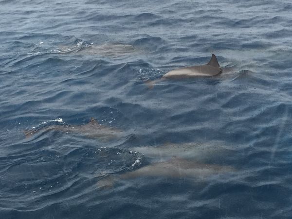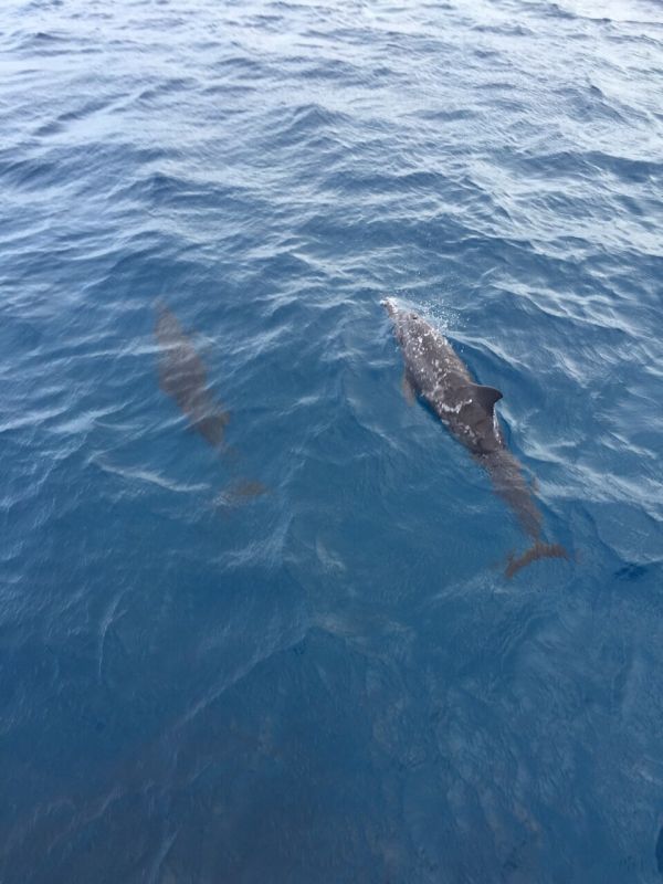 但是一轉眼就遇到一群瓶鼻海豚,之後還能夠浮淺跟釣魚,剛好這船上的人都好會釣魚,至少釣了8條有吧,每條都長得不一樣,讓人真是大開眼界!!