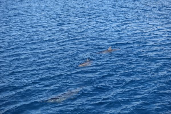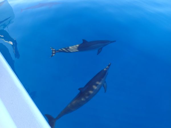 一出海沒多久就開始看到成群的海豚圍繞著我們,第一次看到野生的海豚,真的好興奮啊!之後到海底浮潛,有超多色彩鮮豔的魚兒圍繞著我們,海底世界真的是美呆了!!