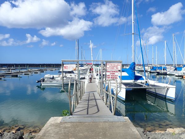 因為我們有租車,而且當天下午打算到關島南部逛逛,所以用 Line 跟 Judy 約好在 Agat Marina 等。等了一會兒,深怕船已經開走了,Judy 這時才帶領一群遊客出現,我們都曬昏了,建議若沒有要順便玩南部的話,給他們接送就好了。