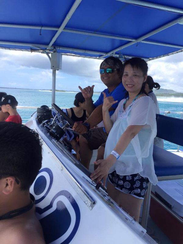我開到遊艇了 , 雖然只有一下下但好爽.....關島的海底世界真的漂亮,水有藍,空氣又新鮮,浮淺時看到各式各樣的熱帶魚,圍繞在你身邊,那感覺太棒了 ,又看到成群的海豚在水面跳耀,真的很幸運