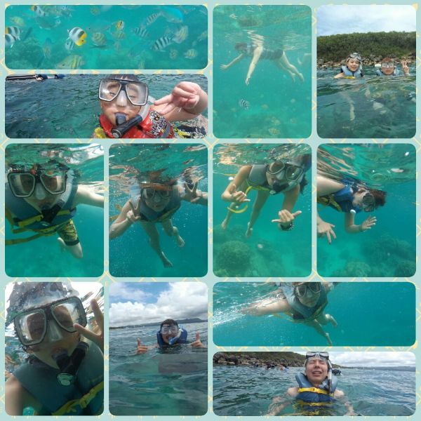 美人魚公主號A方案裡包含的活動有看海豚、垂釣與浮潛,很不幸的是因為颱風的攪局,海浪太大導致無法出外海,所以連一隻海豚都沒看到TAT 但在船上看海景再享受陽光的沐浴,其實也是別有一番feel ~ 等船停在海中間,讓我們下去浮潛,看到海底一堆魚兒,心情更是嗨了起來