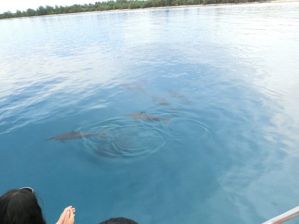人家說來關島 天上飛水裡玩都要去體驗啦 其實我本來要去高空跳傘的 可惜同行有人說太貴又沒有潛水過就要來潛水 其實做美人魚號看海豚潛水浮潛超棒的 在這邊可以體驗出海浮潛船潛的感覺又可以跳水耶 而且台灣的海景真的不能跟關島比 關島水又是不會冷 看我沒穿潛水衣就知道 真的很爽耶~~~ 而且這次看到的海豚句說不是居住在這邊的海豚 因為體型比一般大很多 通常在這邊的海豚是100公分左右的小海豚 今天看到的是大海豚,但還是很棒 而且海水透徹道看的見底下 在這邊也不用擔心有鯊魚哦 因為有海豚在的地方就不會有鯊魚的!! 但是強調來關島真的要體驗空中跳傘啦 我好懊悔沒有去,下次要找志同道合的朋友去體驗啦!!! 寧可多花錢體會一下跳傘啦!!! 人生只有一次趁年輕去體驗老的時候不能玩的哦 聽一位導遊說她跳了以後就體位很多人生觀 改變它很多想法耶 希望下次去或者有人去可以一起分享大家事後對人生的看法呀~~