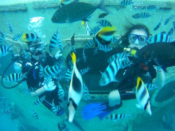 本來因為不會游泳很緊張,但是教練都會很仔細的講解,是講中文的喔不用擔心~而且真的不難!也不會在水中嗆到!耳朵的適應問題也沒想像中的這麼可怕,吞口水或是捏鼻子就能解決了,但是氧氣瓶真的超~級重,在地面上走路要小心,我們8個人下水有五組所以有五個ˊ教練,很安全,遇到問題教練都會幫你解決