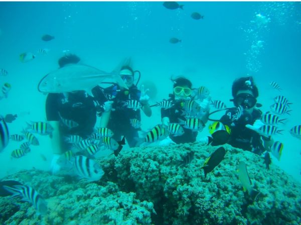 且教練的輔助說明讓你能完全將自己託付給教練,盡情享受潛水過程的樂趣,餵魚、欣賞美麗的熱帶魚,是既跳傘行程最推薦到關島一定要玩的潛水行程啦!