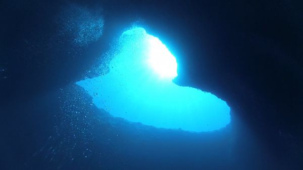關島藍洞潛水 潛到20米有個心形洞口 入洞後再潛10米影返上去湖水藍嘅心形 洞口邊緣還有很多珊瑚、魚仔。 很好的潛水經驗。