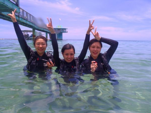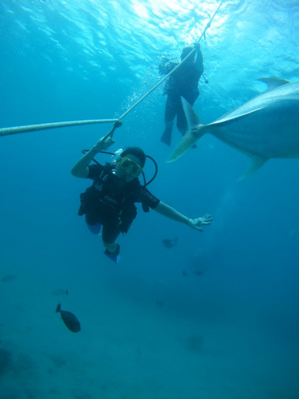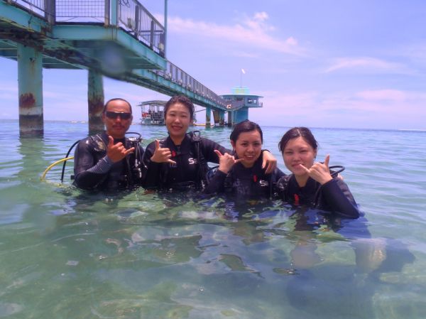 參與JNS的魚眼公園體驗水肺潛水,第一次綁上鉛塊背氧氣瓶重得只能彎著腰走路,一步步艱辛的走過珊瑚礁的海域,JNS的教練非常親切熱情讓學習過程充滿樂趣,搭配老闆娘姍姍全程中文講解放心很多,一開始全員會在踩得到底的海域練習使用氧氣瓶呼吸、練習怎麼排除不舒服的耳壓,當教練們確認每位學員都適應且正確的呼吸後才會正式展開潛水之旅,遵照教練的指示抓著繩索,整個過程放鬆的欣賞美麗的海底世界,真是太享受了啦!!!!!超激推!!紀念光碟一定要買阿~~~