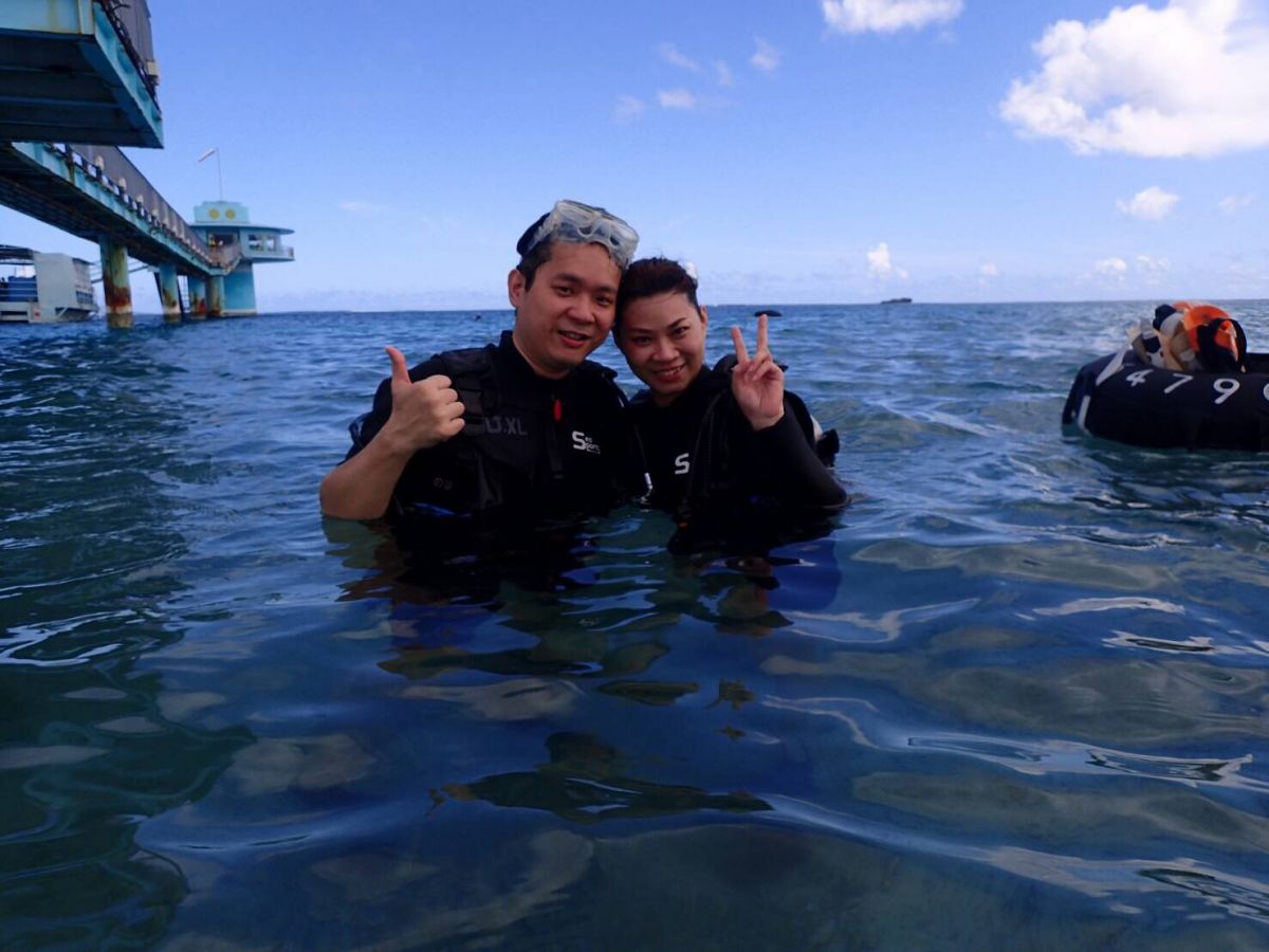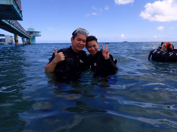 這是我們夫妻倆第一次玩水肺潛水,老實說我不會游泳是個旱鴨子,但是在教練的細心解說下居然很快就能進入狀況,一點都不緊張反而是很興奮的節奏....