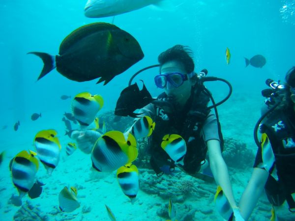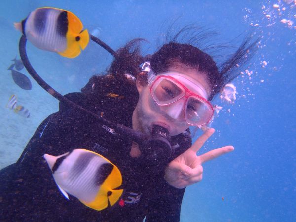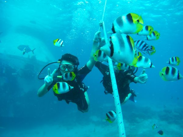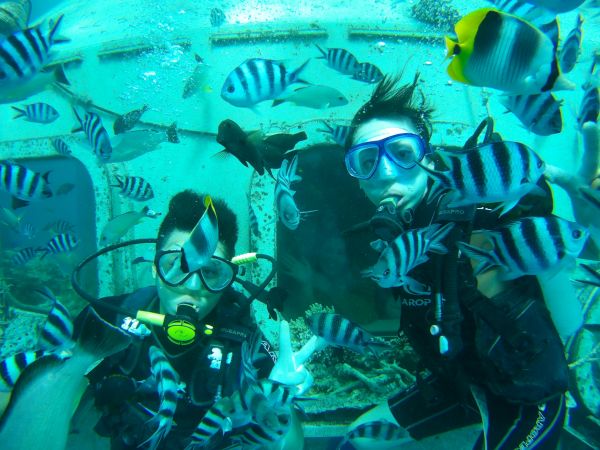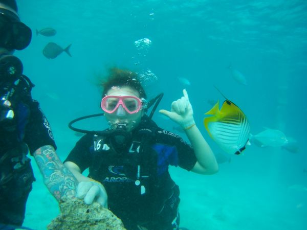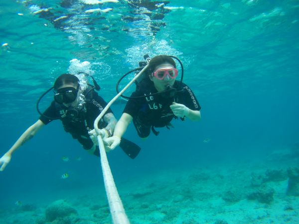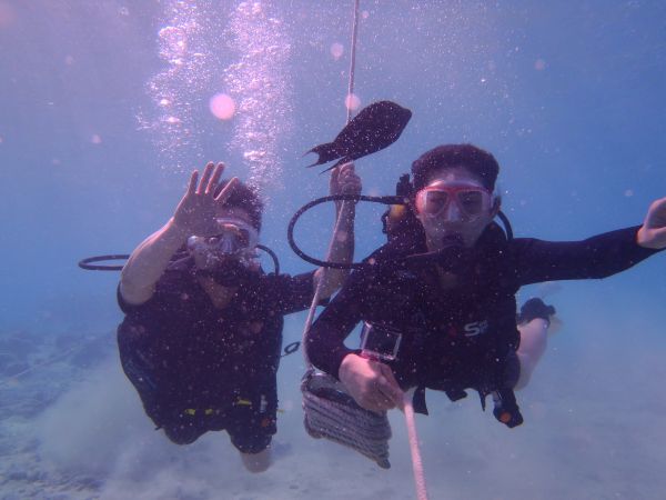 在台灣的時候就先預約好JNS水肺潛水 , 老闆娘姍姍是台灣人 , 所以溝通完全不是問題喔~JNS DIVERS每天都在帶體驗潛水的客人,所以很專業也很安全!!就算不會游泳也可以喔~完全不用擔心~JNS DIVERS會到飯店接送~很貼心的服務喔!!下水前也會先教學跟提醒大家要注意什麼,我們下水的時候一個教練帶兩個人 教練也會幫你們拍照錄影~這麼難得的經驗~我們當然是照片影片都加購囉!!超推薦大家選擇JNS DIVERS喔!!