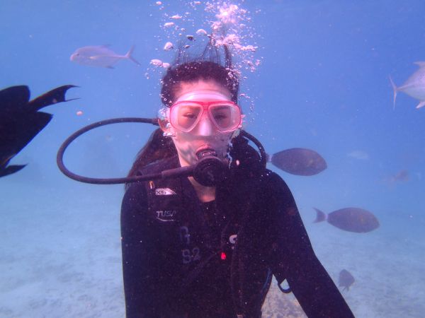 第一次潛水好緊張,小康潛水老闆娘很耐心地看我有沒有不舒服以及不適,一開始我以為自己沒辦法勝任了,後來慢慢帶我練習隨著教練往更深處去,呼吸越來越順,完全忘記那種恐懼感覺;只看到海底世界好漂亮!