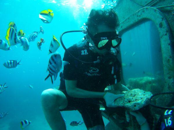 這次參加的是JNS Divers的水肺潛水,潛水的地點是魚眼海洋公園,活動時間含接送約3小時,實際潛入水中大約半小時,JNS的教練都非常親切喔,整個活動過程會一直跟你互動,跟你說說笑笑,老闆娘姍姍是台灣人,會以中文跟大家說明潛水注意事項文,其他教練也都會以簡易的英文說明,完全不用擔心語言問題,如果是第一次體驗水肺潛水的人,非常推薦喔!!!