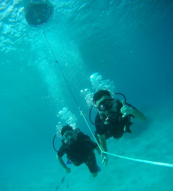 身材超好的老闆娘姍姍先用中文和大家講解各種注意事項,也會教大家簡單的口訣。在正式潛水之前也會先在淺水區練習呼吸跟耳朵減壓,非常的仔細!過程中,負責的教練(Santua)隨時都會注意學員的狀況,並幫忙排除,也會幫忙拍照錄影留念,讓我們有很棒的回憶。