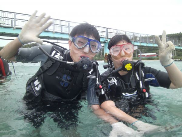 我們選擇的是小康潛水,全程有中文解說的教練,使第一次潛水的我們安心不少。