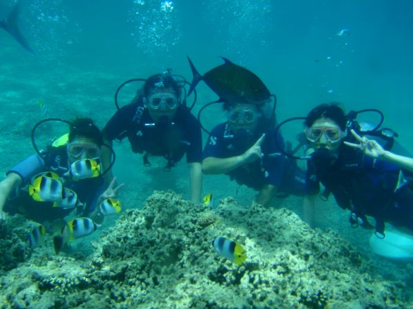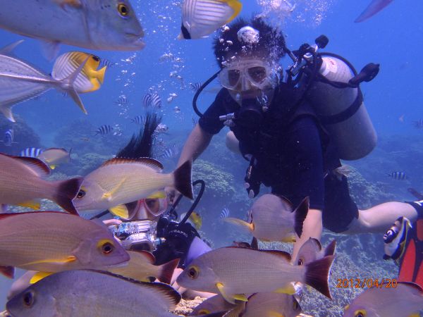 體驗潛水是沒有潛水執照也可以玩的唷!下水前教練會先解說(小康潛水有中文教練),下水先練習,確認沒問題後在帶下水的,挺安全的!水的的魚超大隻&凶狠,在餵食過程超級瘋狂搶食,每隻魚都很大隻唷~