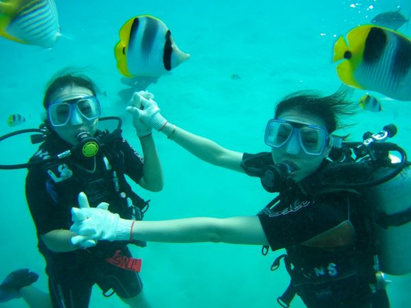 第一次深海潛水,原來海裡面很溫暖,反而浮出水面時,才會感到寒冷,教練們都很熱心教我們如何在潛水的那30分鐘過程中,克服遇到的困難,避免我們在海裡面有不適應的問題產生。