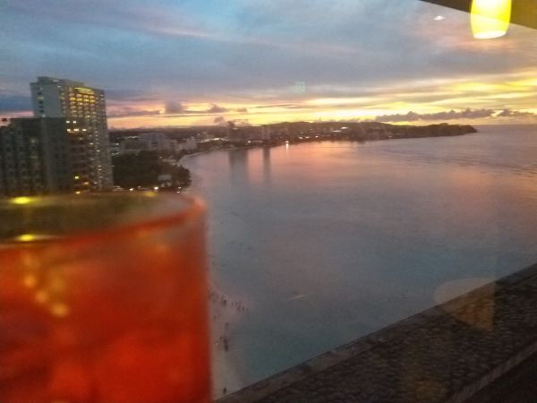 本次來七天六夜,這是離開關島前一晚來,前幾天已去聖塔非、baech&&bar,與餐廳一起海灘景色,這裡真的是cp值最高的,因為在大飯店裡,又在18樓高層,可以只點一杯優惠酒單+免費下酒菜就能享有驚豔的夜景,如果點非優惠酒單+happy hour(18:00-21:00) 享有30%折扣,您非來不可
