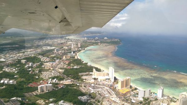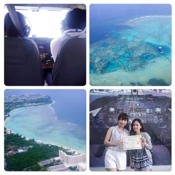 開飛機是我們覺得一定要來體驗的行程之一!當天遇到蘇迪勒颱風,天氣不太穩定,延後一小時才起飛,雖然起飛時遇到氣流不穩定,不過教練是台灣人~很沉穩的告訴我們只是風有點大沒問題的,讓我們感到很安心!教練也會在飛行時沿途介紹關島景點,風景真的很美!教練除了讓我自己推動油門起飛操作方向盤外,在降落後也讓我練習向左向右滑行,真的是很值得的體驗呦!