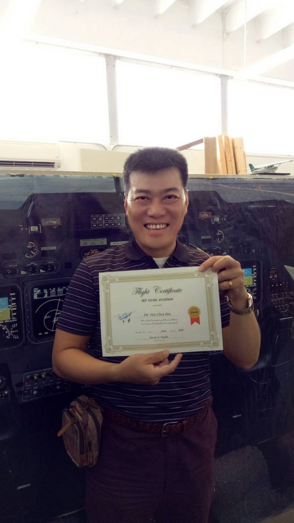 從沒想過自己可以開著飛機飛上天去,這次趁員工旅遊到關島玩的機會,體驗一下當飛行員的感受。