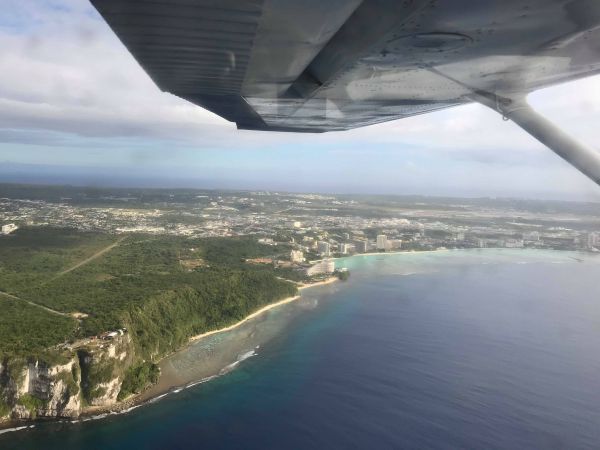 第一次開飛機感覺特別的奇妙 一般很難有機會可以體驗到 這次三十分的體驗 感覺很值得 教練人很好 除了起飛和降落是教練操作的 剩下的都是由我們自己完成 所以一開始起飛時 有點緊張 因為還不太適應又在高空中 所以一度感覺像遇到亂流一樣 有點緊張 但是後來適應了以後 就穩穩的 從高空看關島的美景真的很棒 關島到處都是美景 美到像幅畫 如果可以下次想體驗再長一點的飛行