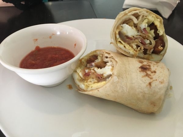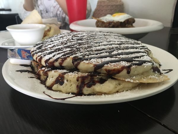 超推這家餐廳~可以一邊享受早餐跟欣賞海邊的風景~超讚的~我們點了一個像漢堡肉的蓋飯,跟巧克力鬆餅,跟捲餅!重點是吃的超滿足,份量有夠嚇人的!哈哈我覺的鬆餅比較特別口感有點像發糕QQ的挺不賴的