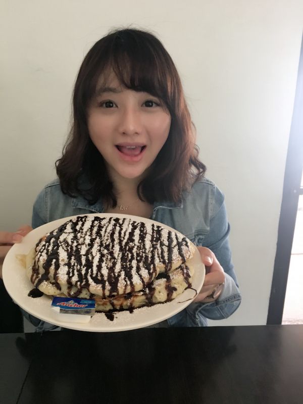 那個鬆餅一端上來確實有嚇到我們三位女生~ 誇張的厚跟大!! 吃起來很像台灣的發粿~~~哈哈哈哈