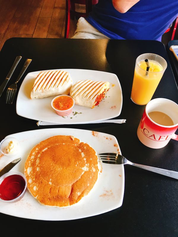 在關島最後一天,由於我們是下午班機,早上睡到自然醒後開車到PIKA'S CAFE,一進門滿滿都是人,關島之家給的手冊也有附上PIKA'S CAFE 中文菜單,所以輕而易舉的我們就點了兩份餐,先生點了墨西哥捲,我沒有很餓所以單點一片鬆餅,可能我們太過期待,結果口味沒有預期的好,尤其是鬆餅......我只能說台灣麥當勞好吃很多^^'' 但我必須稱讚一下拿鐵咖啡,有股淡淡的香草味,很值得點!!!!