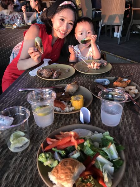 如果重點是吃一頓好吃的燒烤大餐,The Beach可能會讓您失望;有蔬菜、雞豬牛海鮮及甜點,但口感不佳,是屬於吃粗飽的類型,最好吃的大概就是一杯一杯的冰淇淋⋯。嬰兒比較能吃的東西比較少。