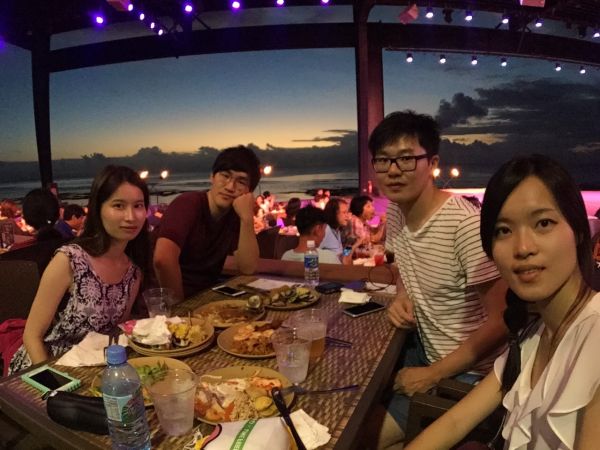 座落於日航飯店旁的the beach餐廳是我們在關島的最一晚也是最浪漫的happy ending,我們自駕趨車前往目的地,一群帥哥辣妹的沙灘排球讓人熱血沸騰,進入了餐廳內,每個人都被這無敵寬廣的海景、美不勝收又千變萬化的夕陽融化了,關島的美真的完全不需修片,幸福感迅速破表呀!無法自拔的猛拍個不停,雖然供應自助餐點量少又差強人意,但被婀娜多姿女舞者們及勇猛戰士們的賣力演出給中和了,經由整團舞者的表演,也讓我們暸解關島上戀人岬上淒美的愛情故事……,再次感謝關島之家的協助,因為有你們讓我們這5天的行程有很美好的回憶。