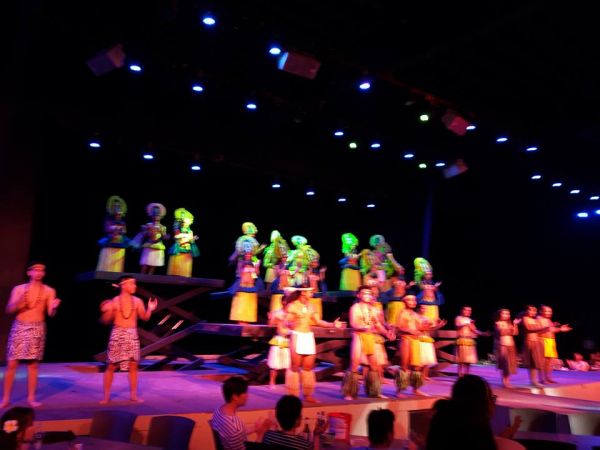 出國前就經關島之家連結的網站線上做了預訂^^必去行程之一the beach dinner show tao tao tasi^^是犀利人妻拍攝場景耶^^朝聖~~哈^^在關島的預定行程大多有包含接送這家也不例外^^接送人數居然高達四台遊覽車之多耶~可想而之這晚上熱鬧非凡^^食物的部分種類不算多但份量一直補充量很多~吃的很飽^^飲料只有提供冰水其他都是需要付費的喔^^晚餐過後show就開始了~~名不虛傳~傳統舞蹈都很震撼力~火舞部分更是很精彩^^舞台設計讓表演者能從四面八方跑出來完全是近距離~中間還有邀請台下觀眾上台互動蠻搞笑的~我們剛好碰上很有表演慾的觀眾哈~結束後還可以跟表演者合照留影喔⋯⋯隔壁還有the beach bar環境不錯外面還可以打沙灘排球~若自行開車提早到下午就可以安排小小的活動喔^^推