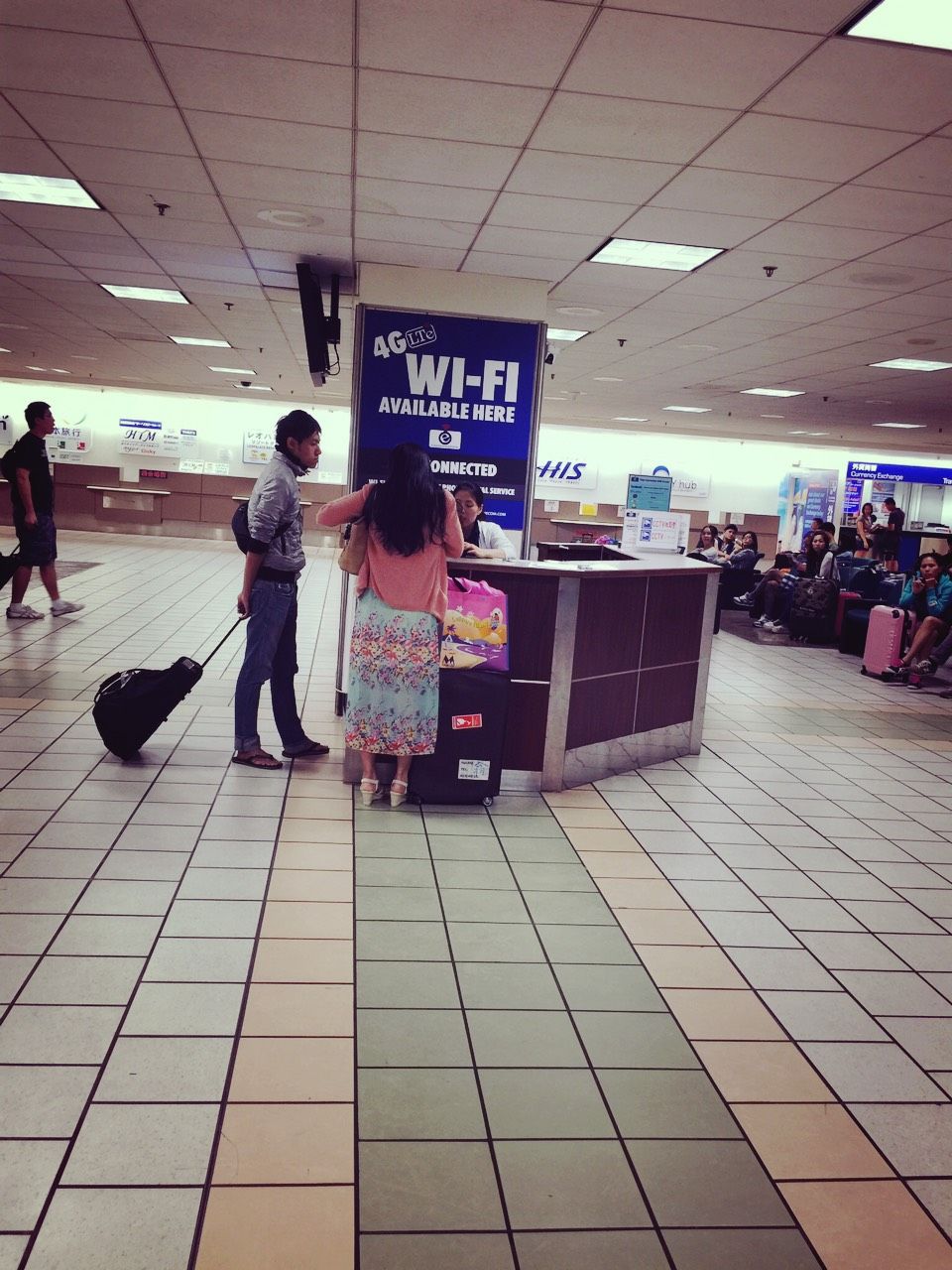 很高興抽中關島行動玩家,一出境的右手邊就能看到WIFI領取處,相當的方便唷~櫃台人員會說中文的,也清楚告訴你如何使用,非常的簡單。但要記得回國前,托運行李後再進入海關檢查前,一定要拿去原本租借處歸還唷~可別不小心帶回台灣了!!
