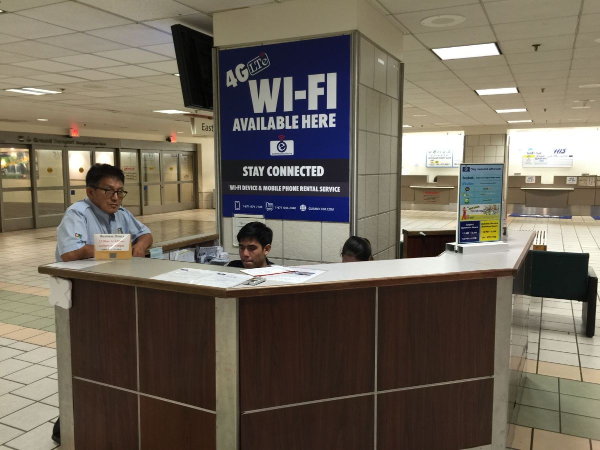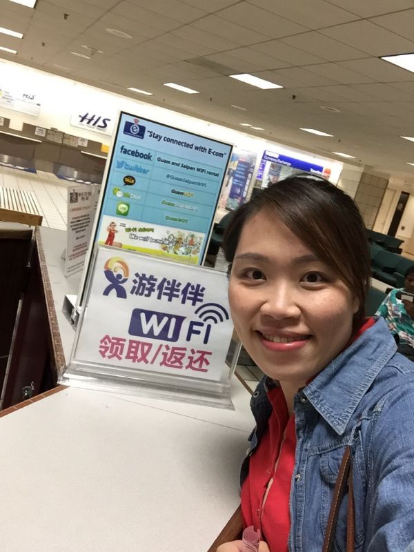 抵達關島機場.第一件事就是在機場內領取在臺灣就預定好的wifi機.這真的很方便.任何手機皆通用.一次還可以分享給10隻手機共用.若是申辦網卡還需擔心大小卡.租一台wifi機通通搞定.