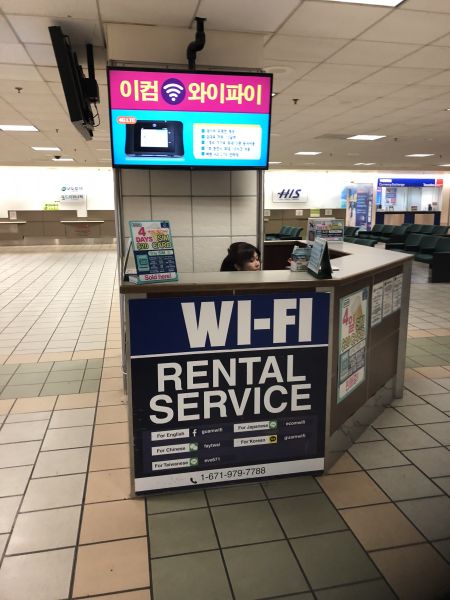 在關島之家租wifi機真的很方便!直接機場入境之後右手邊中間有一個櫃檯如圖,就是專門租借wifi機的地點。小姐人很好全部都會幫你設定好。wifi機在右邊半島的收訊都不錯,只是在左邊島(Talofofo fall)那邊的收訊就不太佳!但是整體來說收訊是蠻不錯的且好用!