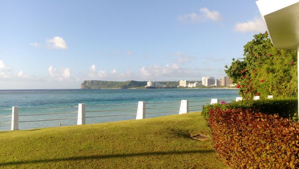 這是我們第一天順路造訪的教堂-戀人教堂~從怡寶沙灘往杜夢灣的方向走~很快就能抵達了~是一座緊鄰沙灘的教堂,座落於太平洋之星飯店的外圍~雖然教堂不大~但是大片的透明落地窗~加上八角的建築造型~再配合海邊~真的很美喔~教堂有用白色圍籬圍住~拍照時不用怕摔下去啦~關島海邊隨便拍真的是一張明信片啦~有機會真的要來這裡享受人生~!