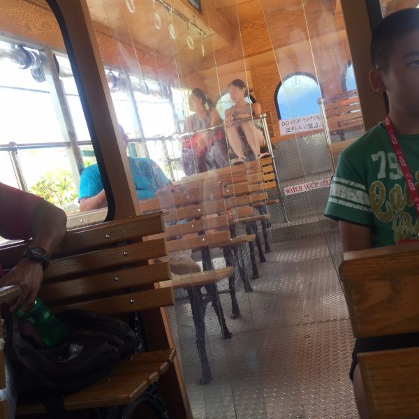 噹噹車車上的位子不是很多,前面是冷氣區,後面是天然吹風區(笑),當然來到關島坐在特有的噹噹車上呼吸一下關島的空氣也是必要的唷!