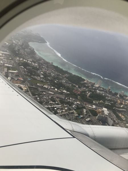 這次我們搭中華航空來關島,飛時只要三個半小時到四小時就到了,班機的時間也很好,不是紅眼班機,窗外看下去的杜夢灣很美,希望以後還有機會再度造訪關島!