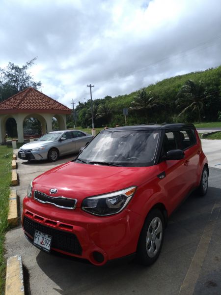 跟關島之家租了KIA Soul的車,非常方便,只要網路預定當天就有人到飯店接送。老闆是台灣人的好處是溝通無障礙。車況良好,只要注意一些交通上細節,其實和台灣開車沒什麼不同。
